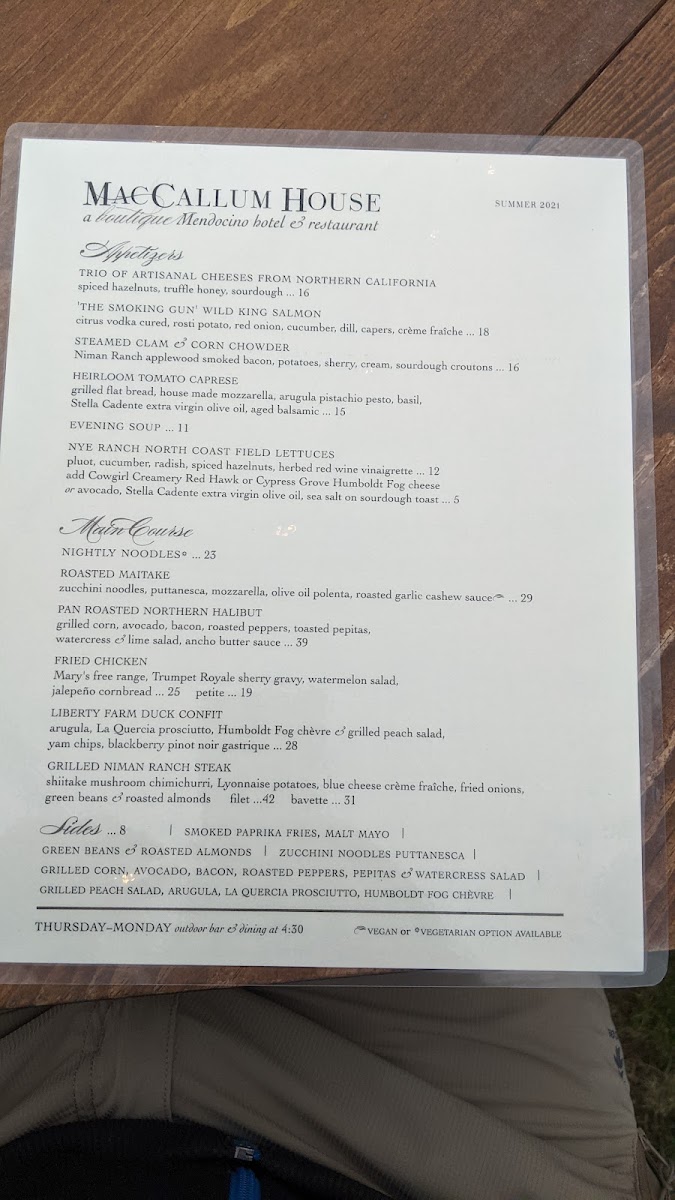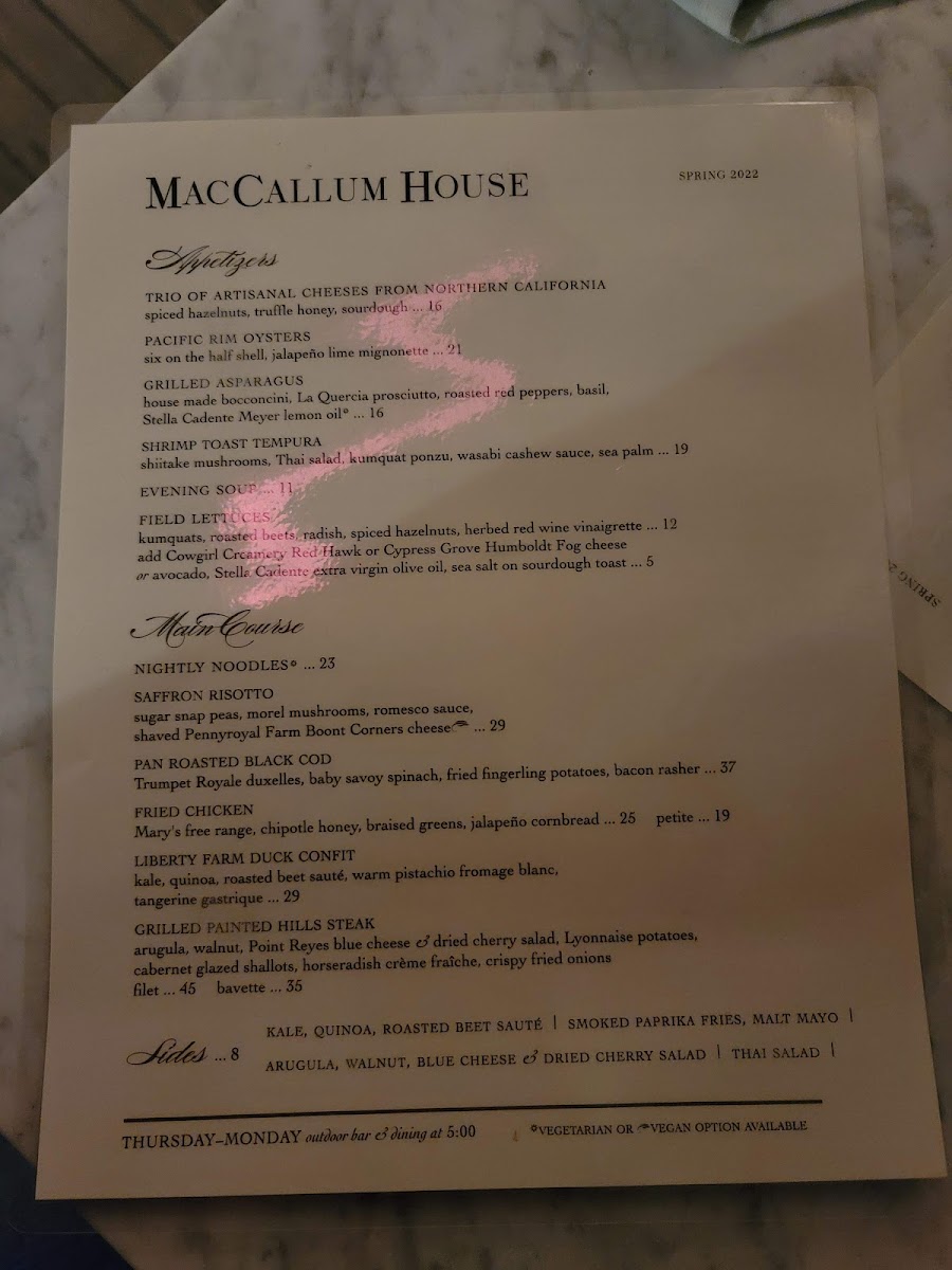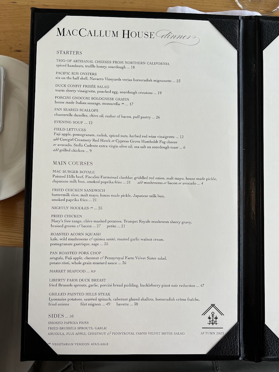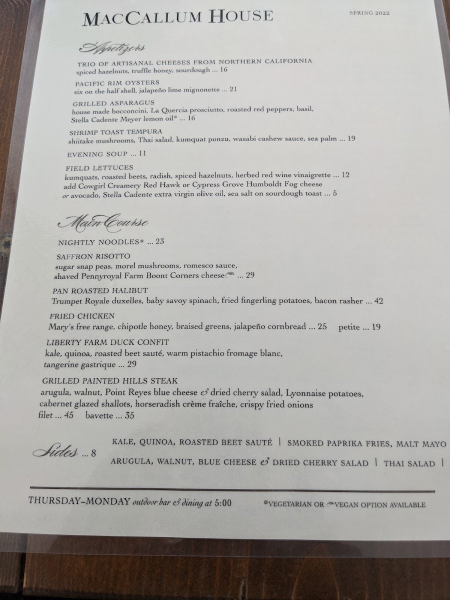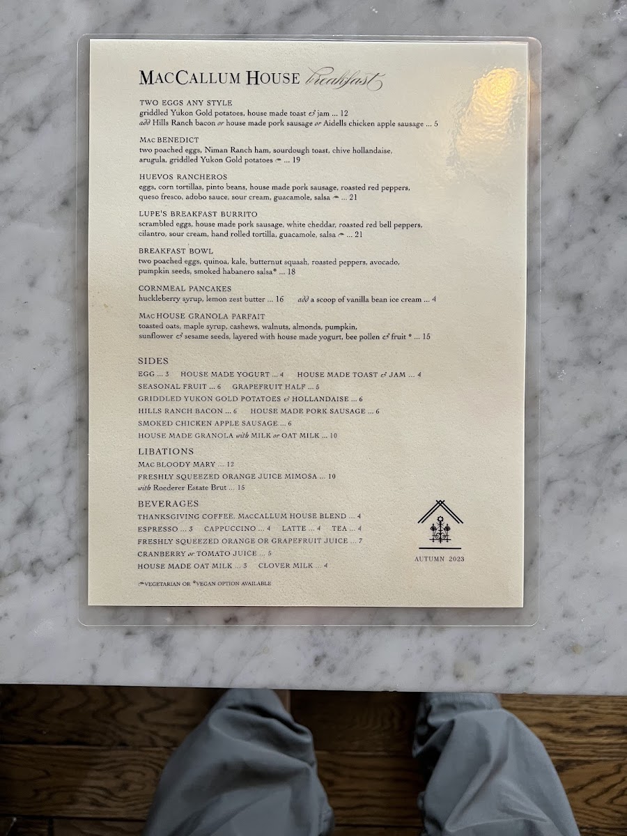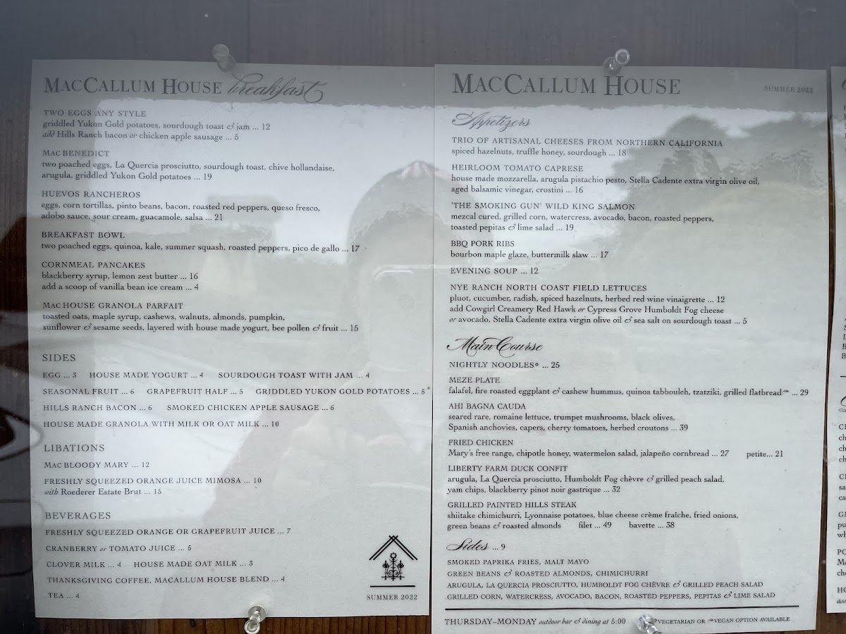 The menu at Maccallum House offers a vibrant selection of flavorful tacos, perfect for a casual yet satisfying meal. For breakfast, the Wright Bacon & Egg Taco and Grilled Veggie & Egg Taco are standout choices, offering a hearty start to the day. As a tasty prelude, the Guacamole and Elotes provide an appetizer experience, both bursting with rich, savory flavors. For a more indulgent taco option, the Beer-Braised Carnitas Taco and Bourbon Black Bean Veggie Taco take center stage as the restaurant's signature dishes. On the side, guests can enhance their taco experience with Grilled Jalapenos and Bourbon Black Beans. To quench your thirst, the menu offers refreshing beverages like Mexican Coke and Mexican Sprite, rounding out the meal with a touch of sweetness and authenticity. This diverse menu caters to both meat lovers and vegetarians alike, ensuring everyone can find something to enjoy.